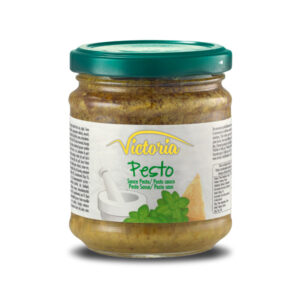 Il pesto verde, caratterizzato dal un gusto delicato di basilico e pinoli, grazie alla consistenza corposa è l’ideale sia come condimento per primi piatti che come salsa spalmabile.